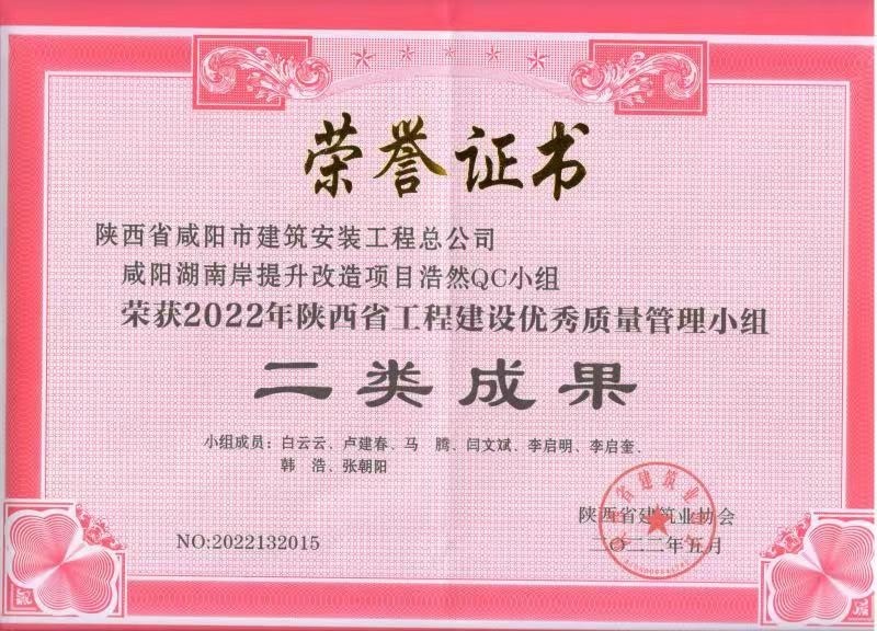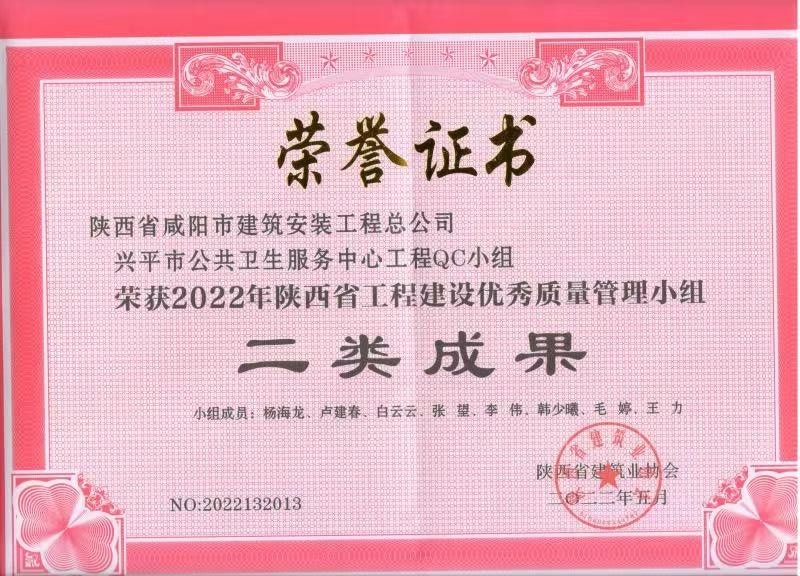 上一篇:2024年度咸陽市建設(shè)工程“秦陽杯”榮譽(yù)證書